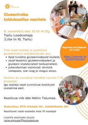 Ootame 7–18-aastaseid noori 8. novembril kell 10.45–14.30 Tartu Loodusmajja (Lille tn 10, Tartu) gluteenivabale toidukoolitusele.