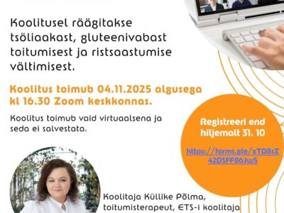 📅 Aeg: 4. november 2025 kell 16.30 📍 Koht: Zoomi keskkond⏱️ Kestus: 1,5 tundi💰 Osalemine: tasuta Eesti Tsöliaakia Selts kutsub osalema tasuta virtuaalsel koolitusel, mis […]