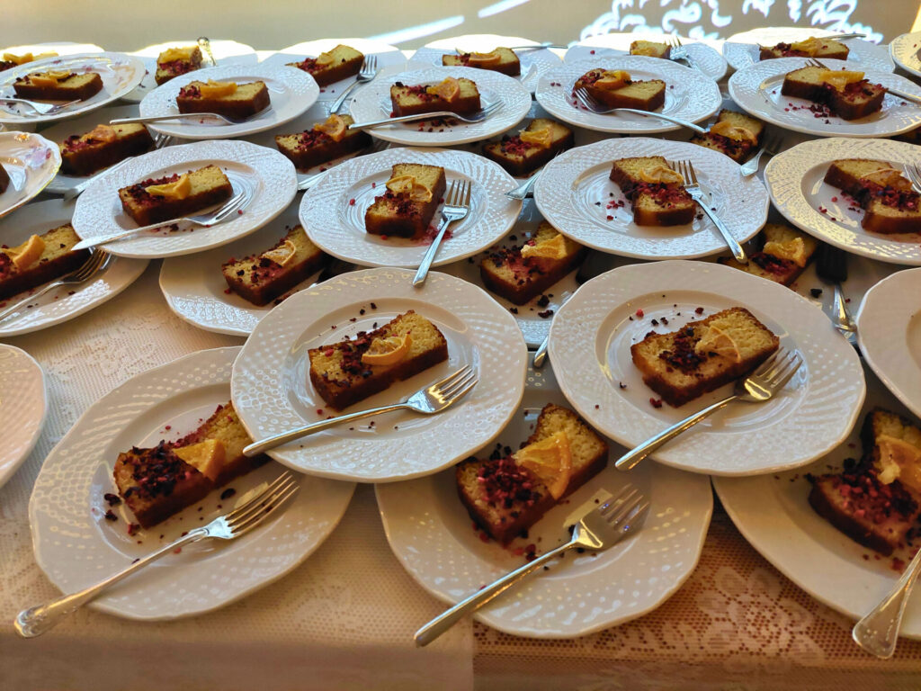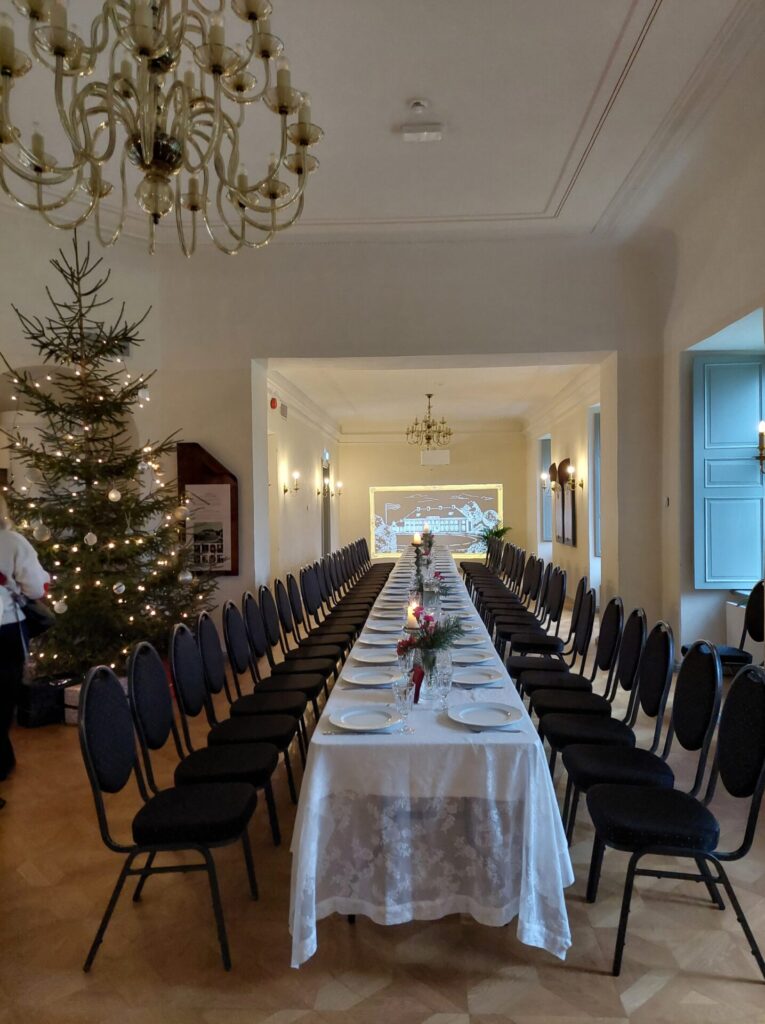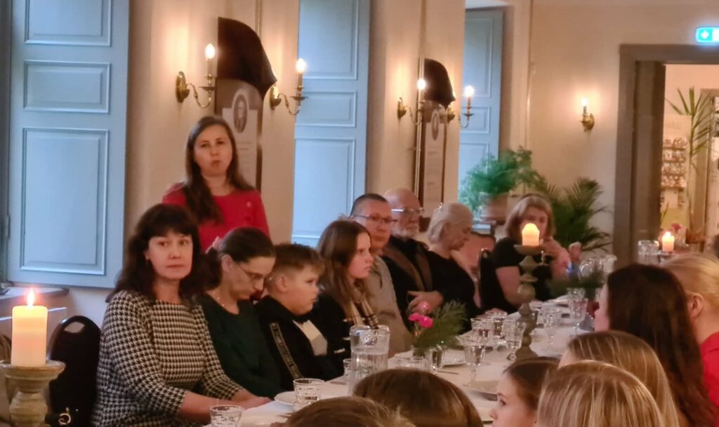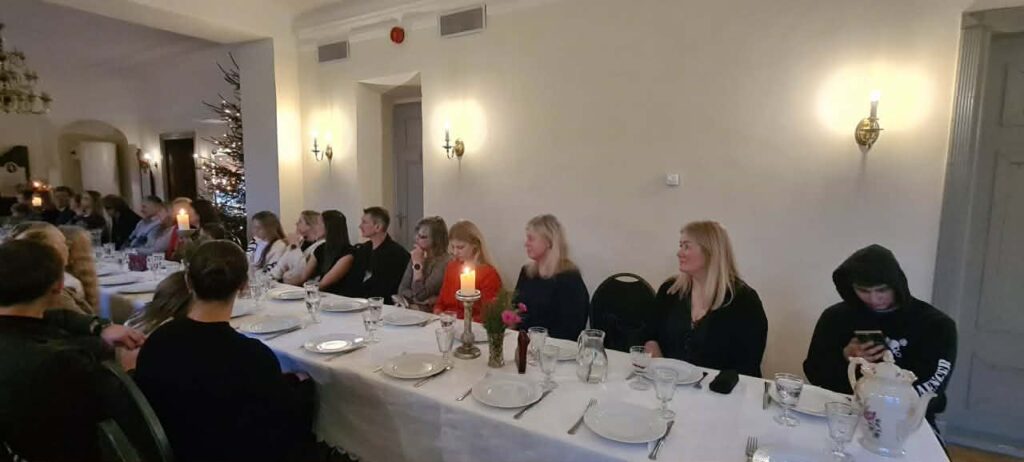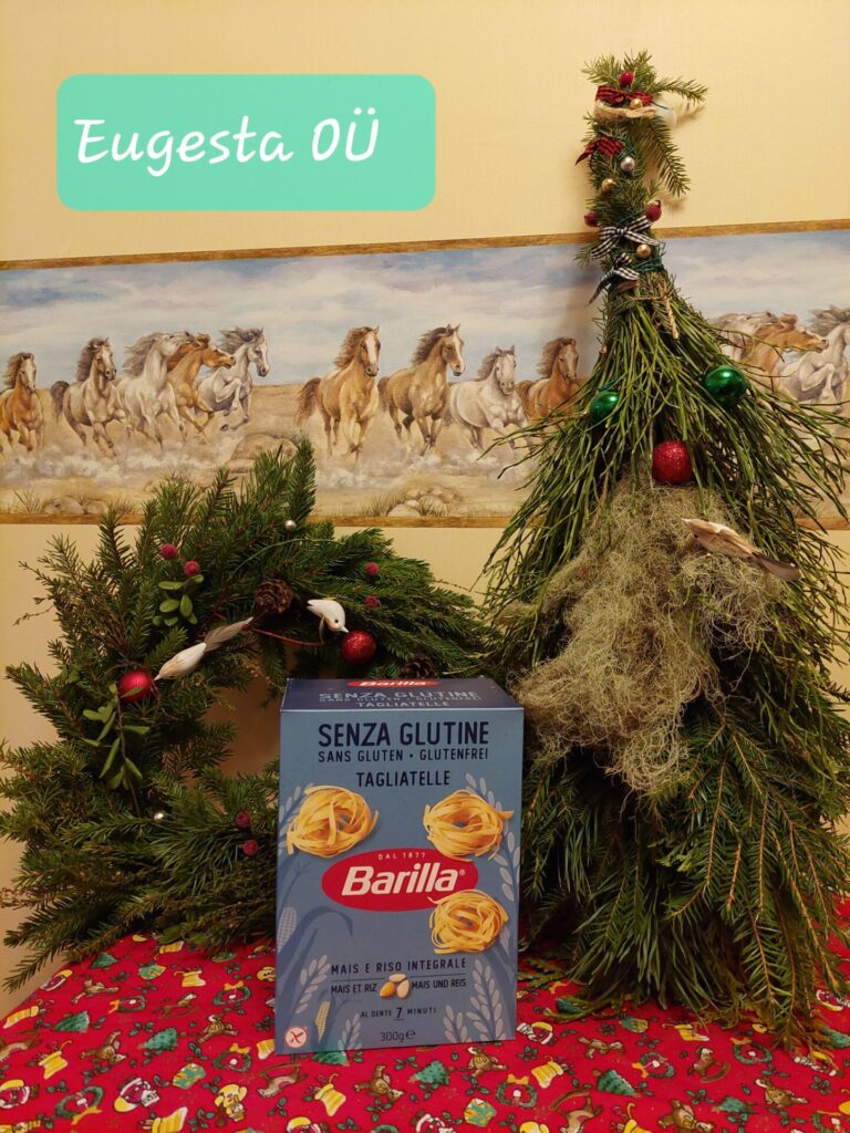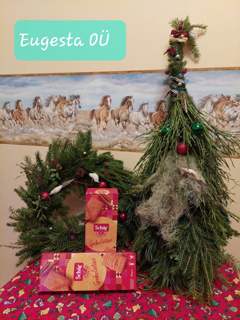 Kui pärjad ja päkapikud valmis, istusime lõunasöögilauda. Meile pakuti korralikku jõulumenüüd – ei puudunud liha, kapsas ega glögi. Mõnusaks lisandiks olid röstitud peedid. Magustoiduks pakuti mandlikooki puuviljadega. Seltsil on kujunenud uus traditsioon – loosime igal üritusel osalejate vahel välja kingitusi. Seekord naeratas loosiõnn Laura Jõesalule, kes leidis loosipakist vahvaid meeneid nii Eesti Tsöliaakia Seltsilt kui ka meie koostööpartneritelt.