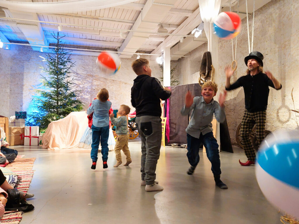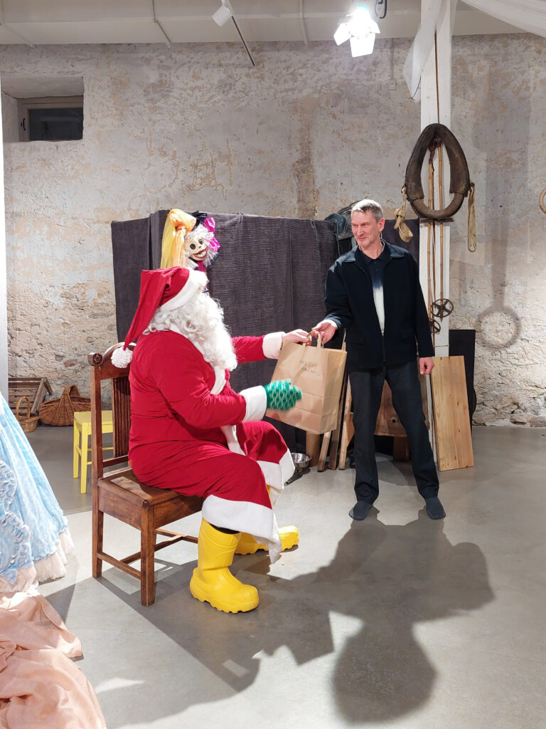 Pärast sööki siirdusime ait-sündmuskeskusesse. Seal lahutasid meie meelt mõisapreili ja koerapoiss Jaan. Nägime tsirkusetrikke, kuulasime nalju ja loomulikult ootasime jõuluvana. Lõpuks saabuski kollaste kummikutega jõuluvana. Järgnesid väiksed etteasted ja kingituste jagamine.