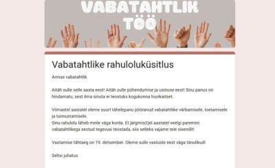 Meie vabatahtlikud hindasid enda rahulolu järgmiselt: